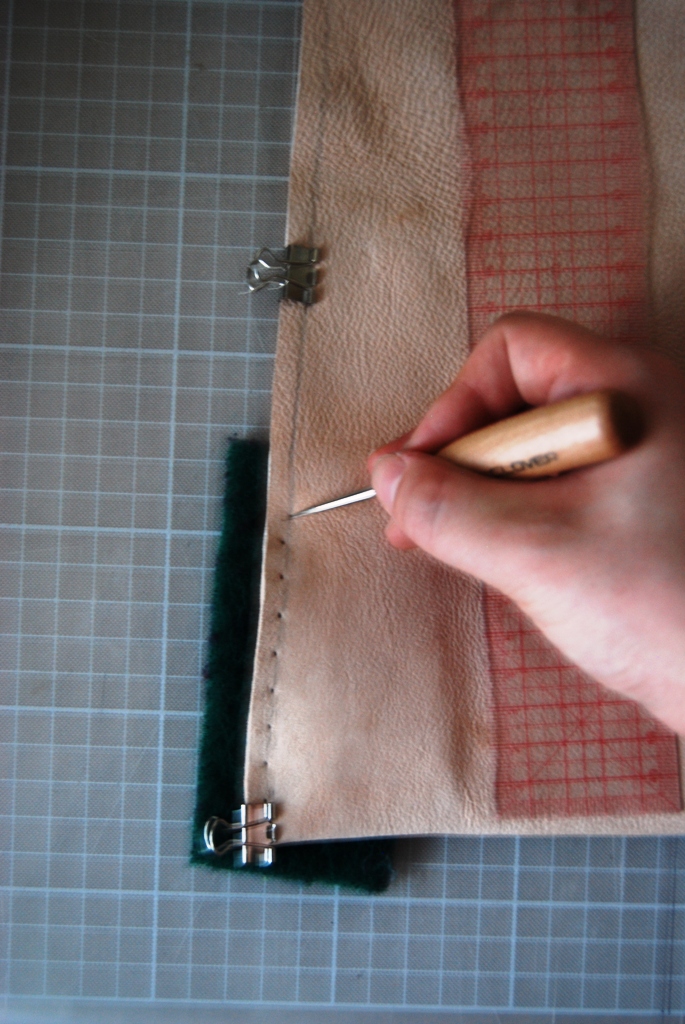革は布のようにすぐに針で縫えません(革が縫えるミシンは例外)