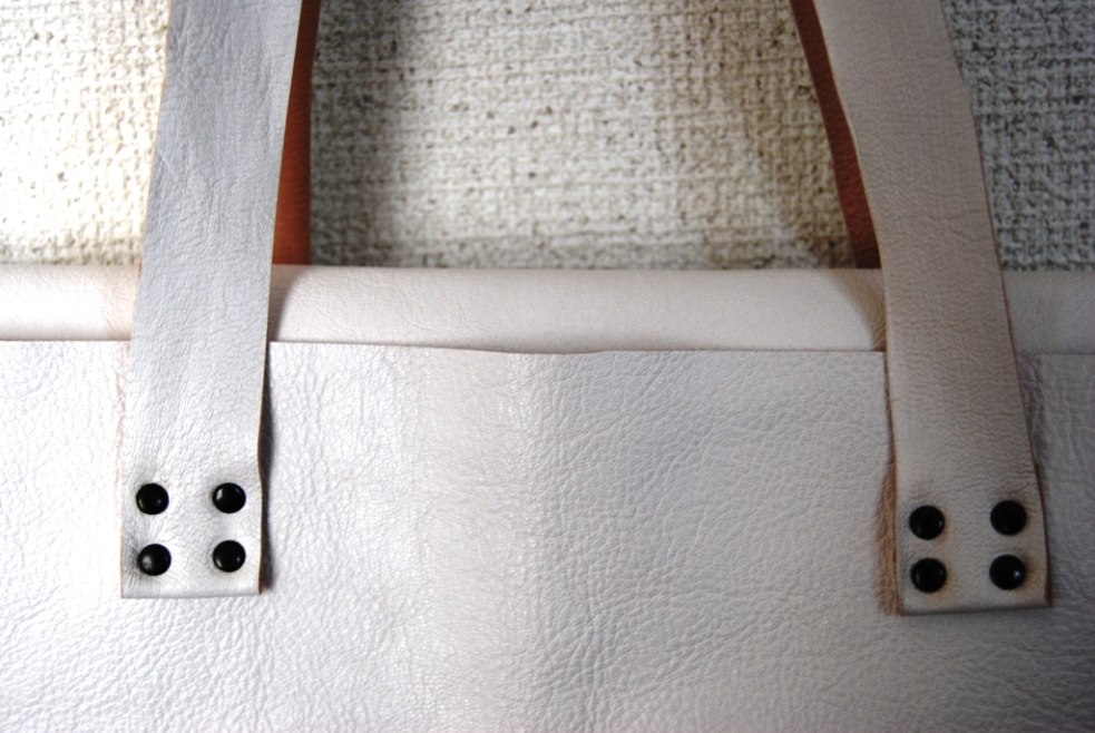 1、革をかばんの形に切り抜く(本体1枚、取っ手2枚)